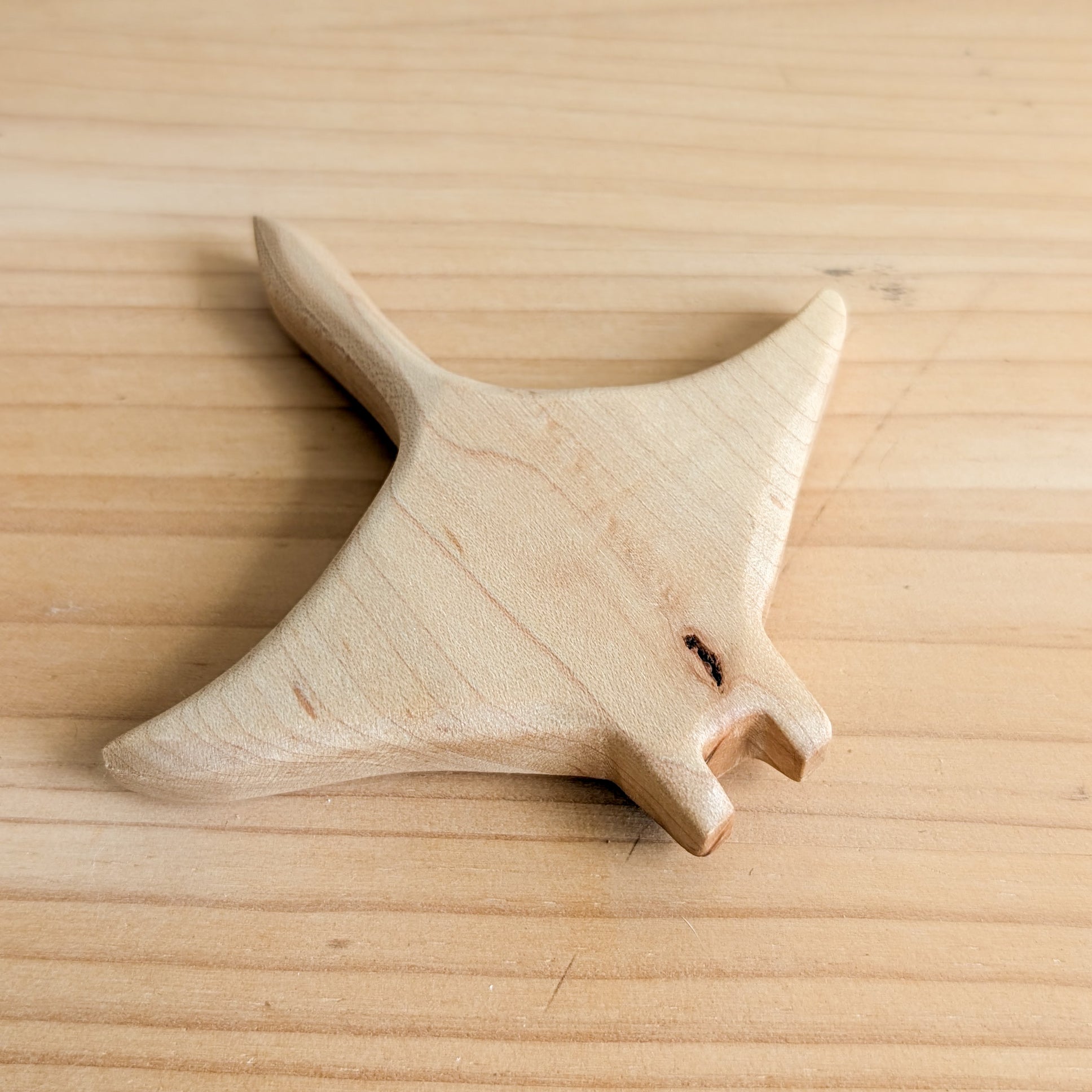 This manta ray was made from a beautiful piece of maple wood with a knot running down the centre.