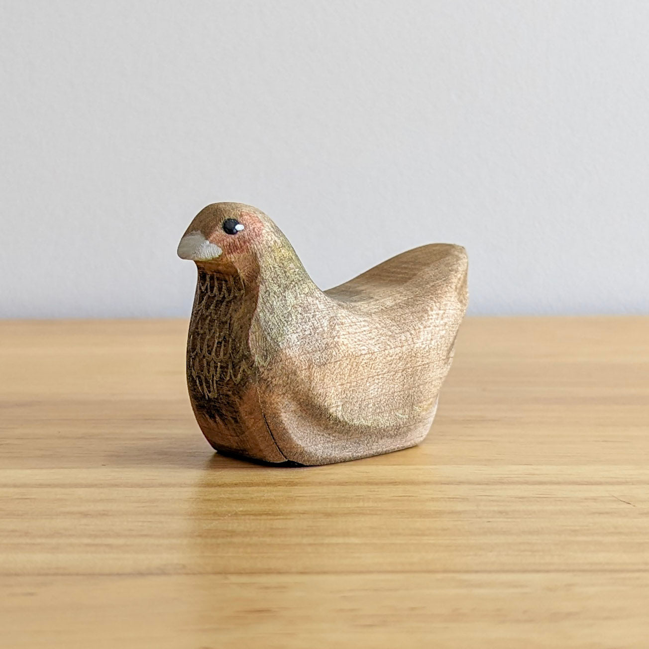 This sweet, beautiful little chicken has a secret - she has a hidey hole under all her wooden feathers for secret things to hide. Perfectly designed for a standard sized Cadbury small chocolate egg, she is also happy to sit on anything that fits - pom poms, blueberries, tiny rocks or seeds. If you ever lose something small, make sure you check under the chook first!